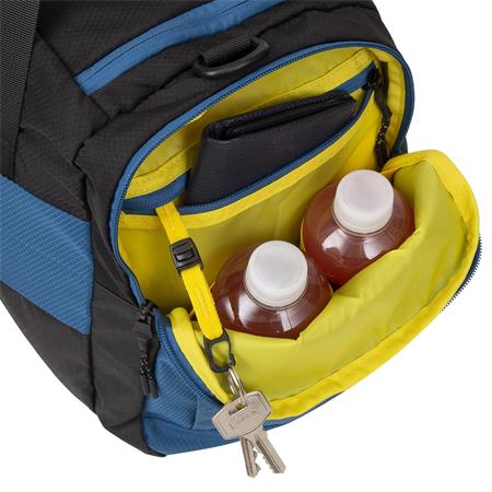 -tágas tárolórekesz a sportruházatnak és külön oldalzseb a tornacipőknek
