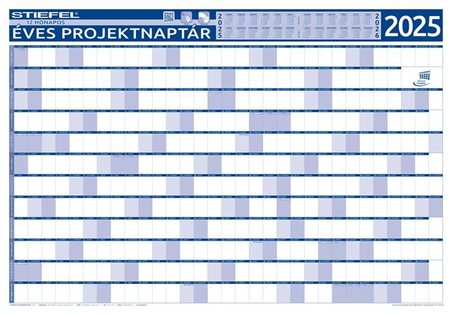 -másik oldalán projektnaptár található, melynek segítségével a 2025-ös naptári évet tervezheti meg